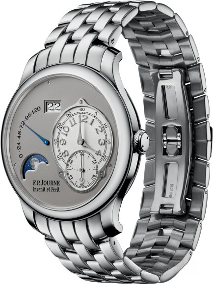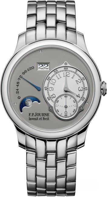 F.P. Journe Octa Lune выпущены в корпусе из платины 950 диаметром 40 мм и обладают водонепроницаемостью до 30 метров. На серебристом циферблате отображаются часы, минуты, секунды, дата, запас хода, фаза луны. Внутри корпуса находится мануфактурный автоматический механизм 1300.3, обладаюий запасом хода 120 часов. Часы комплектуются браслетом из платины.