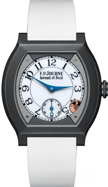 Женские часы «Elégante» с белым циферблатом. Титановый корпус с покрытием титалит этой уникальной модели позволяет увидеть элементы часового механизма. F. P. Journe создали революционную концепцию часов исключительно для дам, сочетая в ней женственность, элегантность и аккуратность. Модель комфортна в использовании и предлагает все плюсы электромеханических часов, обеспечивая автономную работу на протяжении 10 лет использования, и до 18 лет в режиме ожидания. Механический детектор движения позволяет самостоятельно останавливать и запускать ход времени. Приметно через 30 минут после снятия часов, они остановятся. Когда же Вы снова наденете «Elégante», часы автоматически установят правильное время, выбрав кратчайший путь к маркерам с целью энергосбережения. Часы поставляются на каучуковом ремешке.