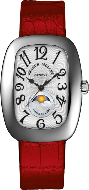 Часы Franck Muller Galet Moonphase представлены в корпусе из белого золота 18к размером 34.1 х 44 мм и водонепроницаемостью 30 метров. Внутри корпуса установлен автоматический механизм, Калибр FM 2038-L6, обладающий запасом хода 40 часов. На серебристом гильошированном циферблате отображаются часы, минуты, секунды, фаза луны. Часы поставляются на ремешке из кожи аллигатора с золотой застежкой.