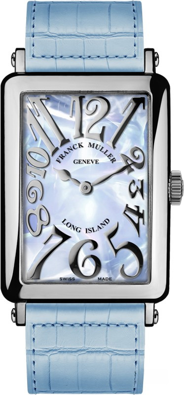 Часы Franck Muller Long Island представлены в корпусе из нержавеющей стали размером 44.55 х 26 х 7.05 мм водонепроницаемостью 30 метров. Внутри корпуса установлен автоматический механизм, Калибр FM 800, обладающий запасом хода 42 часа. На голубом жемчужном циферблате отображаются часы, минуты. Часы поставляются на ремешке из кожи аллигатора с застежкой из нержавеющей стали.