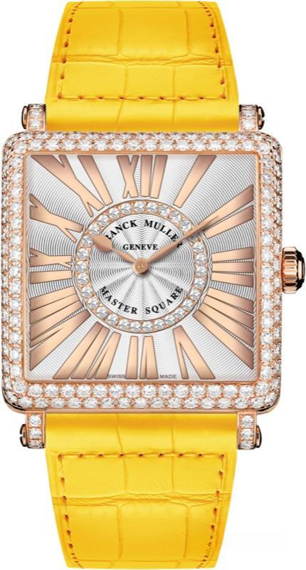 Часы Franck Muller Master Square Quartz представлены в корпусе из розового золота 18к размером 32.7 х 40.7 х 8.5 мм водонепроницаемостью 30 метров. Внутри корпуса установлен кварцевый механизм. На серебристом циферблате с белыми бриллиантами отображаются часы, минуты. Часы поставляются на ремешке из кожи аллигатора с золотой застежкой. Корпус инкрустирован белыми бриллиантами.