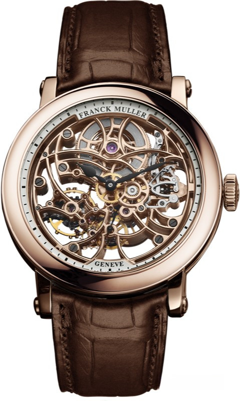 Часы Franck Muller Round Skeleton представлены в корпусе из розового золота 18к размером 45 х 11.2 мм водонепроницаемостью 30 метров. Внутри корпуса находится механизм с ручным заводом, обладающий запсом хода 7 дней. На скелетированном циферблате отображаются часы, минуты, секунды. Часы поставляются на ремешке из кожи аллигатора с вставкой из розового золота 18к.