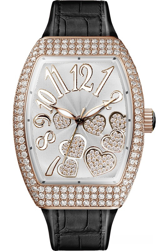 Часы Vanguard Heart щедро украшены изображениями сердечек. Корпус шириной 35 мм идеально подходит к изящному женскому запястью. Материал, из которого созданы часы, - розовое золото 18к. Толщина корпуса – 10,4 мм. Часы водонепроницаемы до 30 метров. Функционал включает в себя часы, минуты и секундную стрелку. Автоматический Калибр обеспечивает запас хода 42 часа. Ремень из кожи аллигатора, нашитой на каучуковую основу. Корпус инкрустирован белыми бриллиантами.
