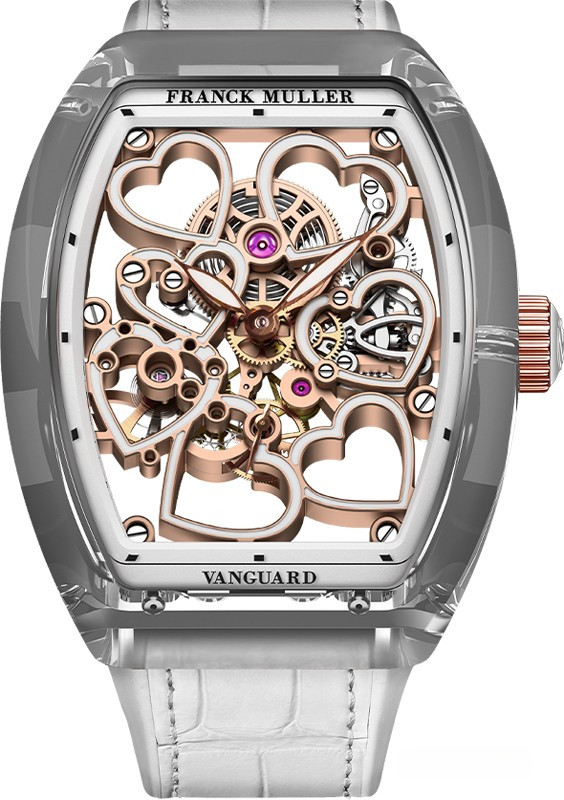 Часы Franck Muller Vanguard Sapphire представлены в корпусе из сапфира размером 32 x 42.3 x 9.9 мм водонепроницаемостью 30 метров. Внутри корпуса находится механизм с ручным заводом, Калибр 1540 VS1, обладающий запасом хода 4 дня. На золотистом циферблате отображаются часы, минуты, секунды. Часы поставляются на ремешке из кожи аллигатора с золотой застежкой.