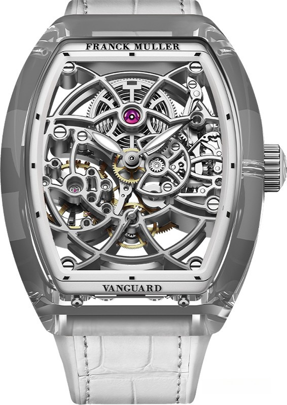 Часы Franck Muller Vanguard Sapphire представлены в корпусе из сапфира размером 32 x 42.3 x 9.9 мм водонепроницаемостью 30 метров. Внутри корпуса находится механизм с ручным заводом, Калибр 1540 VS1, обладающий запасом хода 4 дня. На серебристом циферблате отображаются часы, минуты, секунды. Часы поставляются на ремешке из кожи аллигатора с золотой застежкой.