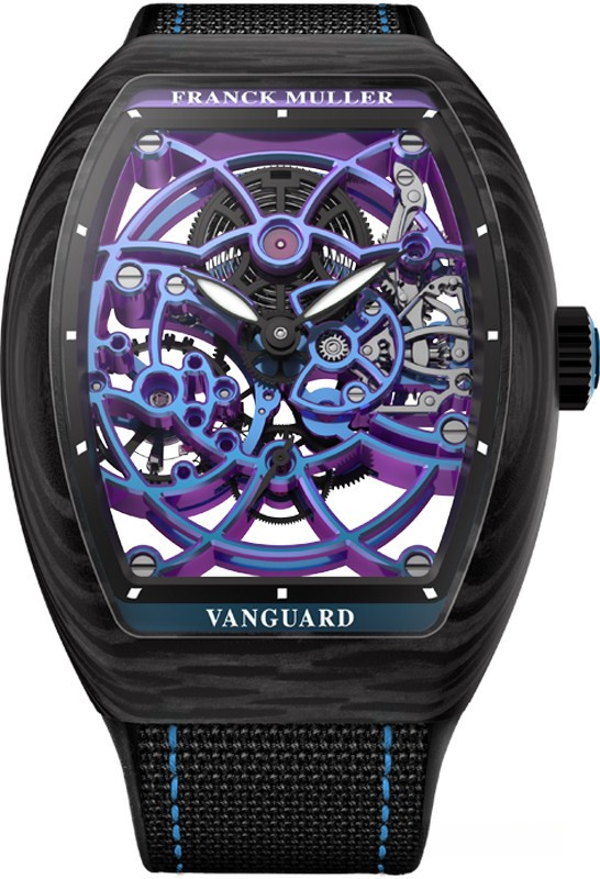 Часы Franck Muller Vanguard Lady Skeleton представлены в корпусе из карбона размером 32 х 42.3 х 9.9 мм и водонепроницаемостью 30 метров. Внутри корпуса установлен механизм с ручным заводом, Калибр FM 1540 VS5, обладающийзапасом хода 96 часов. На фиолетовом циферблате отображаются часы, минуты. Модель комплектуется текстильным ремешком с застежкой из нержавеющей стали.