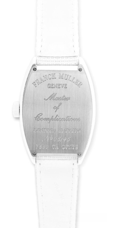 Часы Franck Muller Vanguard Art представлены в корпусе размером 36 мм из титана и эмали водонепроницаемостью 30 метров. Внутри корпуса установлен автоматический механизм, обладающий запасом хода 42 часа. На белом циферблате отображаются часы, минуты. Часы поставляются на нейлоновом ремешке с титановой застежкой. Серия ограничена - 45 шт.