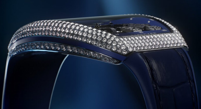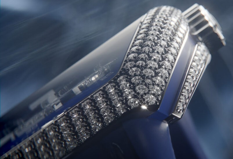 водонепроницаемость 30 м, корпус инкрустирован белыми бриллиантами
