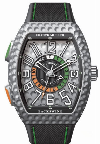 Модель часов Franck Muller Vanguard V 45 Backswing идеально подходит для тех, кто хочет играть в гольф. Эстетика хронометра отвечает эстетическим атрибуты гольфа. Корпус выполнен из нержавеющей стали. Корпус и циферблат были обработаны с помощью специальной машины, чтобы получить текстуру мяча для гольфа. Центральное расположение счетчика ударов в гольфе позволяет владельцу отслеживать все удары без затруднений. Внутри корпуса установлен автоматический Калибр FM 800 CGS с запасом хода 42 часа. Часы поставляются на интегрированном каучуковом ремешке.