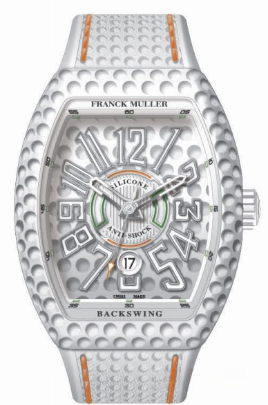 Модель часов Franck Muller Vanguard V 45 Backswing идеально подходит для тех, кто хочет играть в гольф. Эстетика хронометра отвечает эстетическим атрибуты гольфа. Корпус выполнен из титана. Корпус и циферблат были обработаны с помощью специальной машины, чтобы получить текстуру мяча для гольфа. На циферблате отображаются часы, минуты, секунды и дата. Внутри корпуса установлен автоматический Калибр FM 800 CGS с запасом хода 42 часа. Часы поставляются на интегрированном каучуковом ремешке.