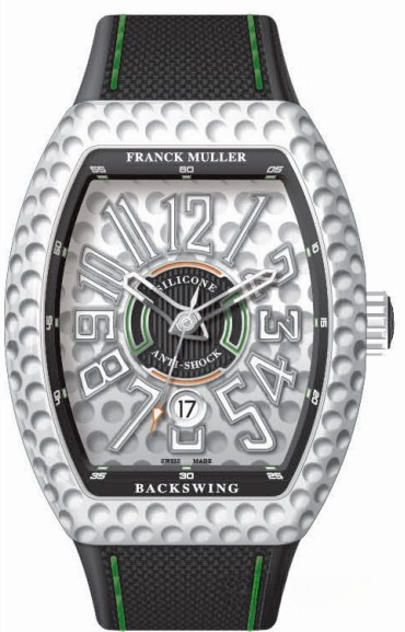 Модель часов Franck Muller Vanguard V 45 Backswing идеально подходит для тех, кто хочет играть в гольф. Эстетика хронометра отвечает эстетическим атрибуты гольфа. Корпус выполнен из титана. Корпус и циферблат были обработаны с помощью специальной машины, чтобы получить текстуру мяча для гольфа. На циферблате отображаются часы, минуты, секунды и дата. Внутри корпуса установлен автоматический Калибр FM 800 CGS с запасом хода 42 часа. Часы поставляются на интегрированном каучуковом ремешке.