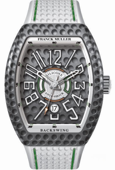 Модель часов Franck Muller Vanguard V 45 Backswing идеально подходит для тех, кто хочет играть в гольф. Эстетика хронометра отвечает эстетическим атрибуты гольфа. Корпус выполнен из титана. Корпус и циферблат были обработаны с помощью специальной машины, чтобы получить текстуру мяча для гольфа. На циферблате отображаются часы, минуты, секунды и дата. Внутри корпуса установлен автоматический Калибр FM 800 CGS с запасом хода 42 часа. Часы поставляются на интегрированном каучуковом ремешке.