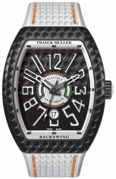 Модель часов Franck Muller Vanguard V 45 Backswing идеально подходит для тех, кто хочет играть в гольф. Эстетика хронометра отвечает эстетическим атрибуты гольфа. Корпус выполнен из титана с покрытием DLC. Корпус и циферблат были обработаны с помощью специальной машины, чтобы получить текстуру мяча для гольфа. На циферблате отображаются часы, минуты, секунды и дата. Внутри корпуса установлен автоматический Калибр FM 800 CGS с запасом хода 42 часа. Часы поставляются на интегрированном каучуковом ремешке.