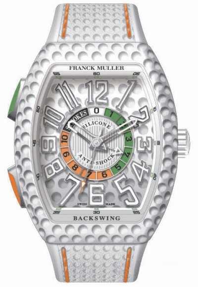 Модель часов Franck Muller Vanguard V 45 Backswing идеально подходит для тех, кто хочет играть в гольф. Эстетика хронометра отвечает эстетическим атрибуты гольфа. Корпус выполнен из титана. Корпус и циферблат были обработаны с помощью специальной машины, чтобы получить текстуру мяча для гольфа. Центральное расположение счетчика ударов в гольфе позволяет владельцу отслеживать все удары без затруднений. Внутри корпуса установлен автоматический Калибр FM 800 CGS с запасом хода 42 часа. Часы поставляются на интегрированном каучуковом ремешке.
