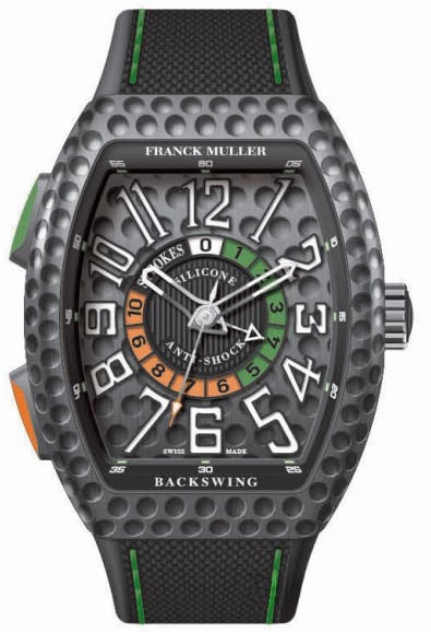 Модель часов Franck Muller Vanguard V 45 Backswing идеально подходит для тех, кто хочет играть в гольф. Эстетика хронометра отвечает эстетическим атрибуты гольфа. Корпус выполнен из титана. Корпус и циферблат были обработаны с помощью специальной машины, чтобы получить текстуру мяча для гольфа. Центральное расположение счетчика ударов в гольфе позволяет владельцу отслеживать все удары без затруднений. Внутри корпуса установлен автоматический Калибр FM 800 CGS с запасом хода 42 часа. Часы поставляются на интегрированном каучуковом ремешке.