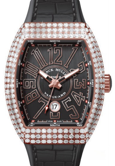 Часы Franck Muller Vanguard V 45 SC DT представлены в корпусе из розового золота 18к размером 44 х 53.7 х 12.8 мм и водонепроницаемостью 30 метров. Внутри корпуса установлен автоматический механизм, Калибр FM 0800 с запасом хода 42 часа. На черном циферблате отображаются часы, минуты, секунды, дата. Часы поставляются на черном ремешке из кожа аллигатора с вставкой из розового золота 18к. Корпус инкрустирован белыми бриллиантами.