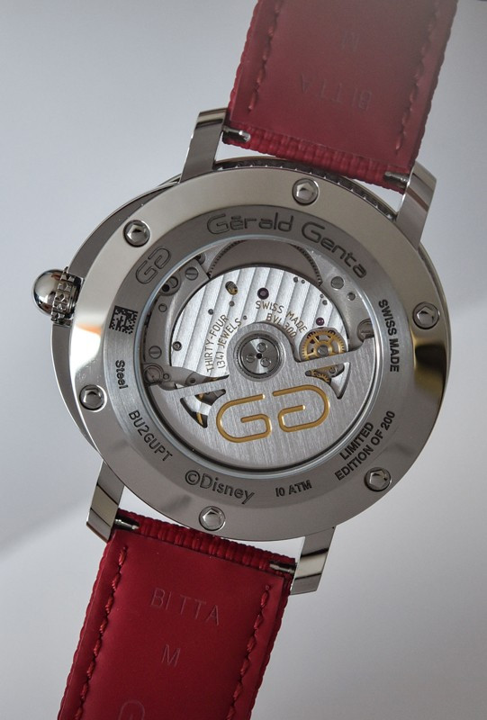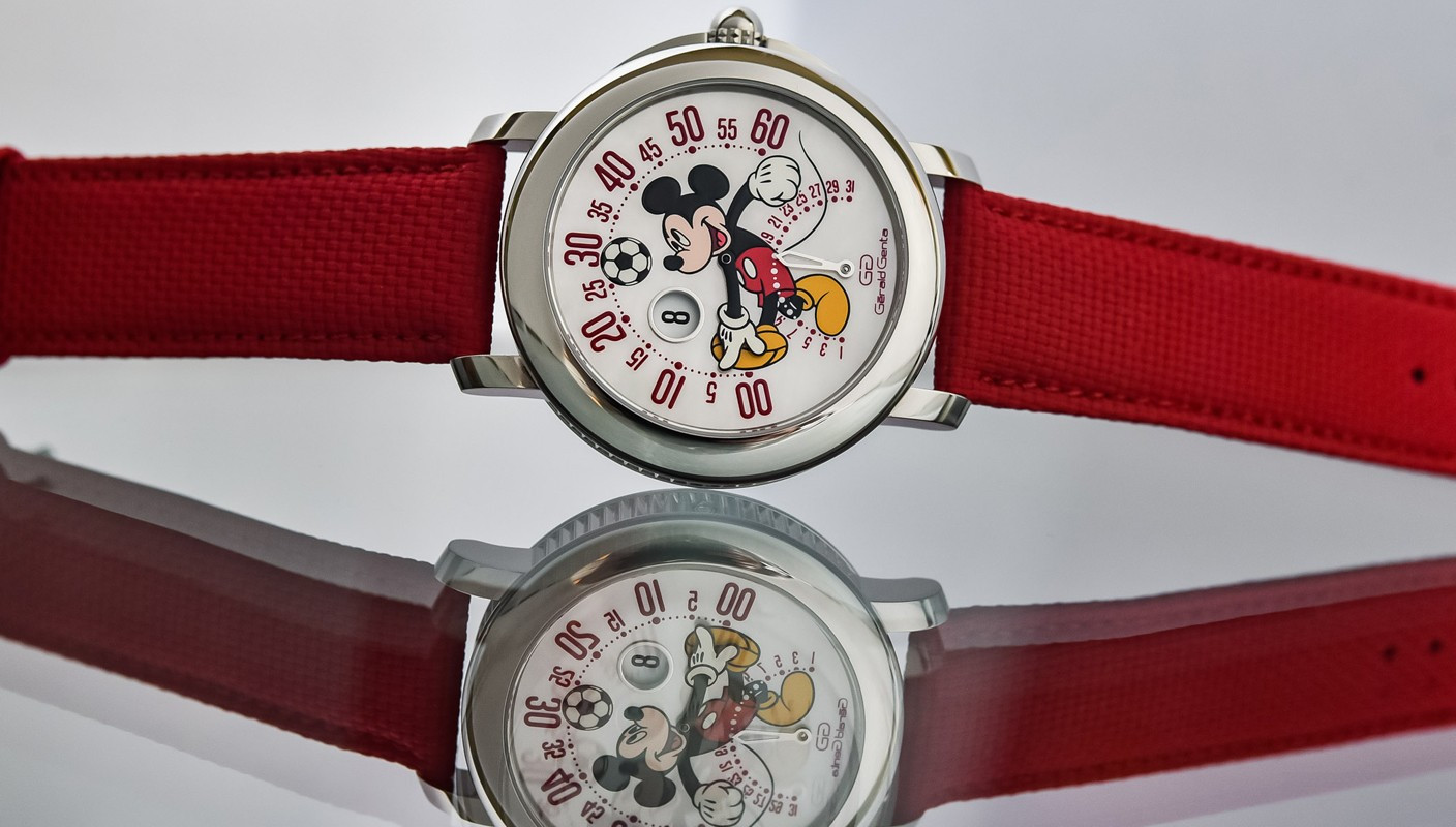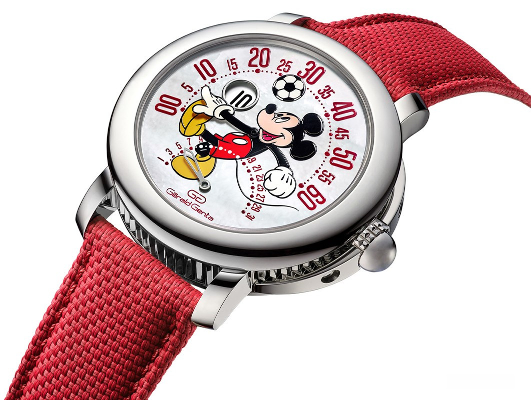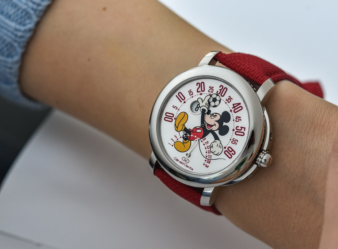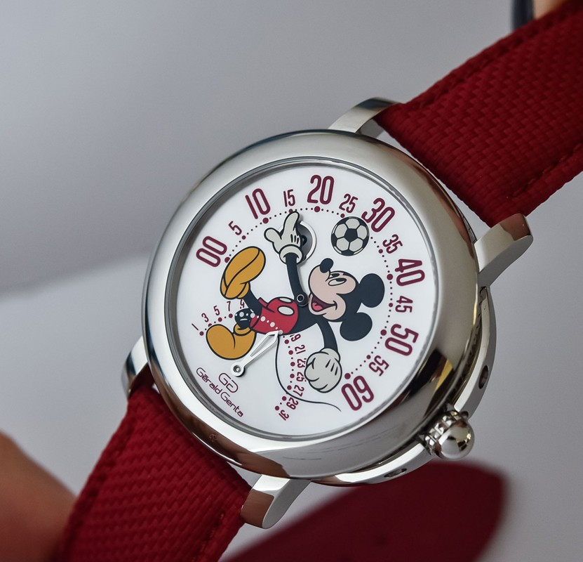 Часы Gerald Genta Mickey Mouse представлены в корпусе размером 41 мм из нержавеющей стали водонепроницаемостью 100 метров. Внутри корпуса установлен автоматический механизм, Калибр BLV300, обладающий запасом хода 42 часа. На белом жемчужном циферблате отображаются часы, минуты, дата.Часы поставляются на кожаном браслете с застежкой из нержавеющей стали. Серия ограничена - 100 шт.