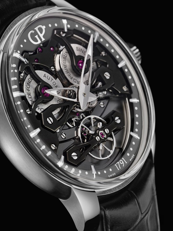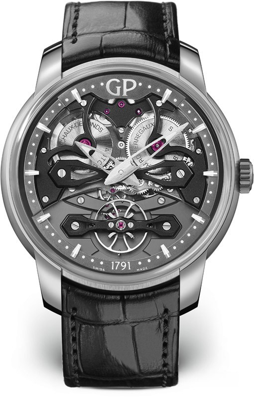 Модель Neo-Bridges воплощает в себе современную интерпретацию базовых эстетических кодов Мануфактуры Girard-Perregaux. Чтобы подчеркнуть следование этим художественным принципам, инженеры и часовые мастера дополнили 45-миллиметровый в диаметре титановый корпус толщиной 12,18 мм чередованием матовых и полированных поверхностей. Гармоничный ансамбль увенчан сапфировым стеклом в форме «коробки» и минималистичным циферблатом, а также прозрачной задней крышкой из сапфирового стекла – эти детали дают возможность комфортно считывать показания и наслаждаться великолепным часовым механизмом, состоящим из 208 деталей.