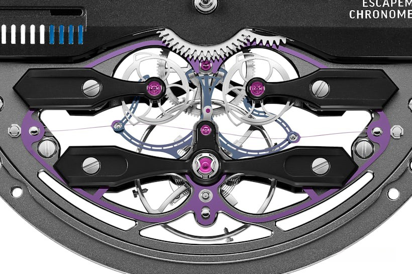 Часы Girard-Perregaux Bridges Neo Constant Escapement представлены в корпусе размером 45 x 14.8 мм из титана водонепроницаемостью 30 метров. Внутри корпуса установлен механизм с ручным заводом, Калибр GP09200-1153, обладающий запасом хода 7 дней. На черном скелетированном циферблате отображаются часы, минуты, секунды, запас хода. Часы поставляются на каучуковом ремешке с титановой застежкой.