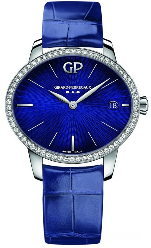 Часы Girard-Perregaux Cat`s Eye Eternity Edition представлены в корпусе из нержавеющей стали размером 35.4 x 30.4 мм водонепроницаемостью 30 метров. Внутри корпуса находится автоматический механизм, Калибр GP03300-1739, обладающий запасом хода 46 часов. На синем гильошированном циферблате отображаются часы, минуты, дата. Часы поставляются на ремешке из кожи аллигатора с застежкой из нержавеющей стали. Безель из белых бриллиантов. Серия ограничена - 88 шт.