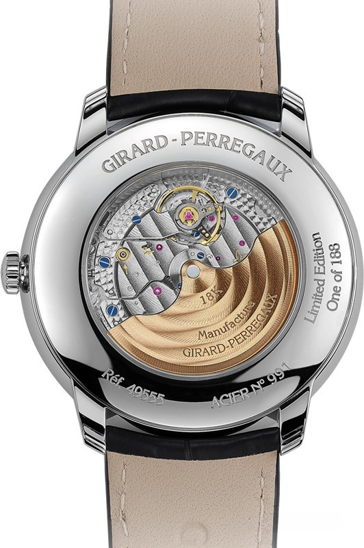 Часы Girard-Perregaux 1966 Automatic 40 mm представлены в корпусе из нержавеющей стали размером 40 х 8.9 мм и водонепроницаемостью 30 метров. Внутри корпуса установлен автоматический механизм, Калибр GP03300-1402 с запасом хода 46 часов. На черном циферблате отображаются часы, минтуы, секунды и дата. Часы комплектуются ремешком из кожи аллигатора с вставкой из нержавеющей стали. Серия ограничена - 188 шт.