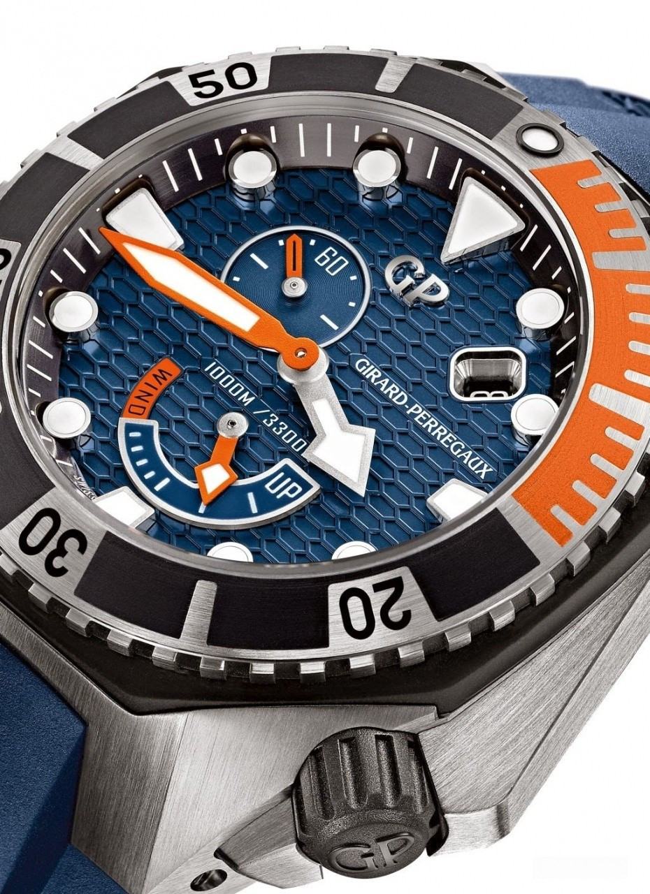 Дизайн модели выполнен в дайверском стиле. Корпус изготовлен из нержавеющей стали, диаметром 44,0 мм, водонепроницаемый до 1000 метров. Защищенная завинчивающаяся заводная головка, с выгравированным логотипом бренда на ее торце, расположена на 4 часах. Вращающийся однонаправленный дайверский безель; гелиевый клапан; завинчивающаяся задняя крышка корпуса. Выпуклое сапфировое стекло с антибликовым покрытием защищает циферблат с сотовой отделкой, крупными накладными часовыми индексами и стрелками, покрытыми люминесцентным составом белого цвета. Модель оснащена мануфактурным швейцарским автоматическим механизмом Girard-Perregaux GP3300-0074, диаметром 25,60 мм, на 27 камнях, с балансовой частотой 28800 полуколебаний в час (4 гц), запасом хода 46 часов, функциями индикации часов, минут (посредством соответствующих центральных стрелок), секунд (на малом боковом циферблате, расположенном на 10 часах), даты (посредством соответствующего цифрового указателя в апертуре, расположенной между часом и двумя часами) и запаса хода (посредством соответствующего полукруглого аналогового указателя, расположенного на 6 часах).