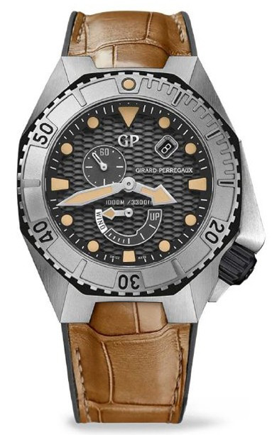 Girard-Perregaux совершенно недавно добавили в коллекцию восьмую версию Sea Hawk III и, в то же время, впервые отобразили некоторые «ретро» элементы в весьма современном дизайне: стрелки и индексы предстают в ретро-стиле с люминесцентной краской и как указатель на индикаторе запаса хода, так и минутная стрелка серебистые (вместо красного, зеленого или оранжевого цветов, как видно на предыдущих моделях), что делает часы самой элегантной и, возможно, также наиболее спорной версией из всех. Данная модель Girard-Perregaux Sea Hawk оснащена соответствующим ей ремешком из кожи аллигатора, но также на выбор доступны стальной браслет или стандартный каучуковый ремешок. Часовой механизм GP3300 с секундным субциферблатом и индикатором запаса хода. Размеры корпуса составляют 44 мм в диаметре и около 17 мм в толщину.