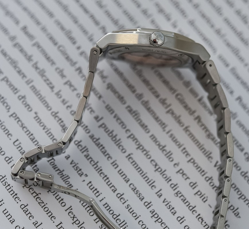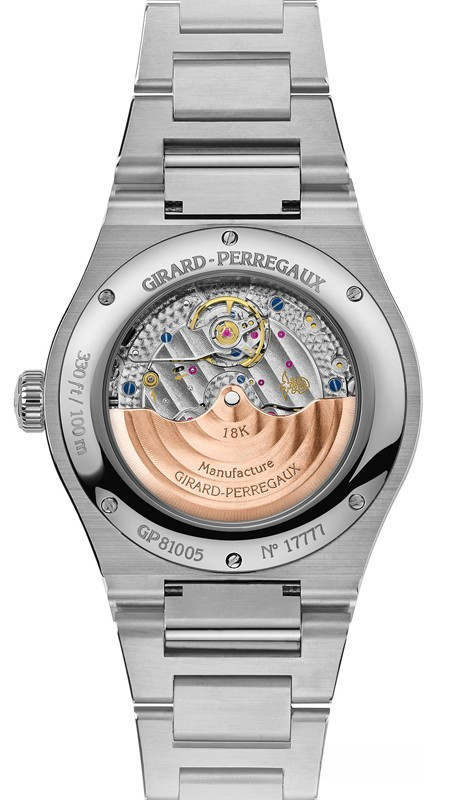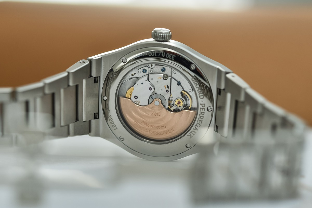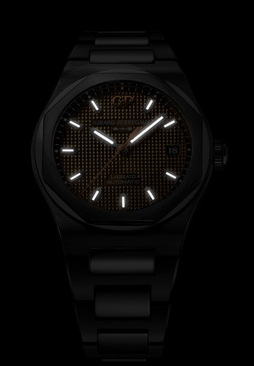 Часы Laureato 38 mm представлены в корпусе из нержавеющей стали. Поставляется на браслете из нержавеющей стали. Модель Laureato 38 mm оснащена часовым механизмом GP03300. Этот механический Калибр с автоматическим заводом полностью изготовлен специалистами Girard-Perregaux. Точный, надежный Калибр, который приводит в действие часовую, минутную и секундную стрелки, а также указатель даты, делает модель Laureato 38 mm еще более престижной.