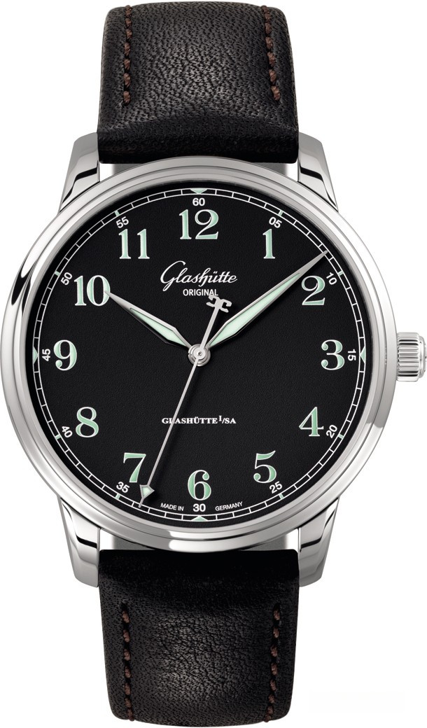 Часы Senator Excellence от часового бренда Glashutte Original имеет корпус круглой формы, изготовленный из нержавеющей стали диаметром 40 мм, водонепроницаемый до 50 метров. Сапфировое стекло установлено на передней стороне корпуса и на его задней крышке. Черный циферблат с арабскими цифрами и золотыми стрелками. Модель оснащена мануфактурным швейцарским автоматическим механизмом Калибр 36, с запасом хода 100 часов, функциями индикации часов, минут и секунд (посредством соответствующих центральных стрелок). Черный кожаный ремешок с застежкой из нержавеюще стали.
