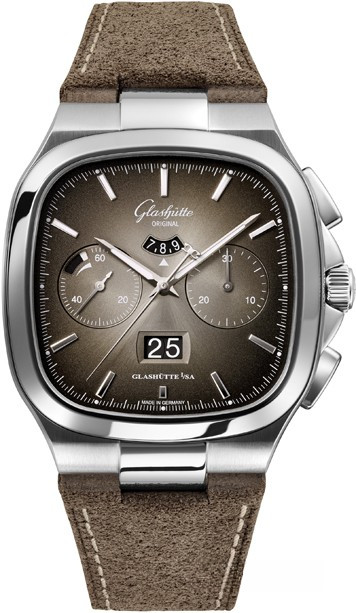 Glashütte Original представляет модель Seventies Chronograph Panorama Date. Это совершенно новый хронограф, механизм которого был разработан и изготовлен на немецкой часовой мануфактуре в г.Гласхютте. Часы Seventies Chronograph Panorama Date выпущены с серым циферблатом. Модель отличает характерный для коллекции квадратный корпус с округлыми углами и безелем из нержавеющей стали. Часы снабжены кожаным ремешком с вставкой из нержавеющей стали.