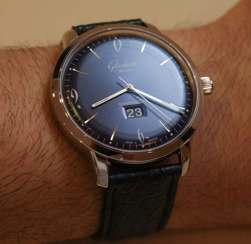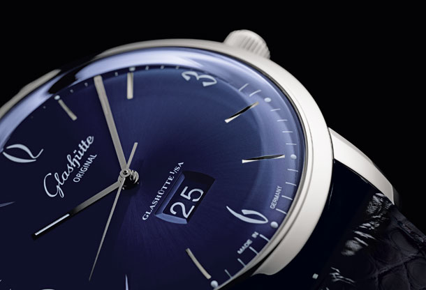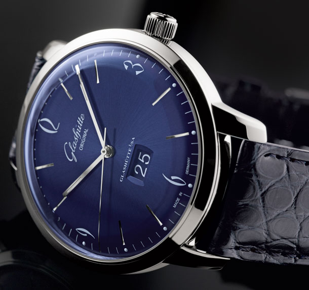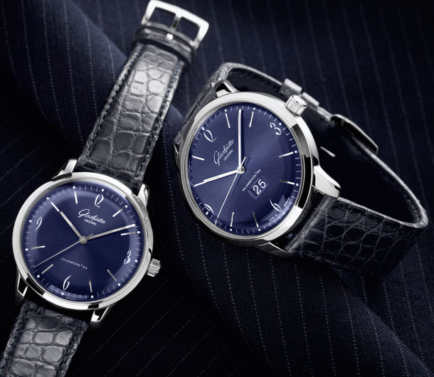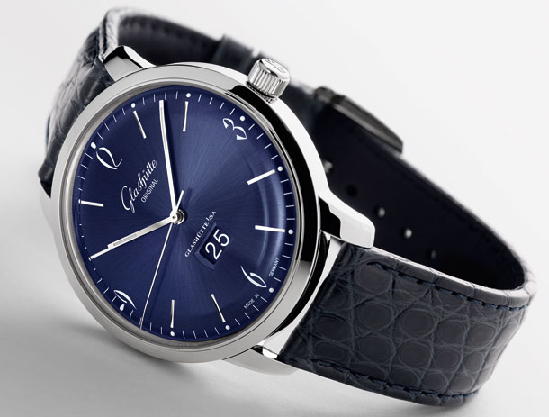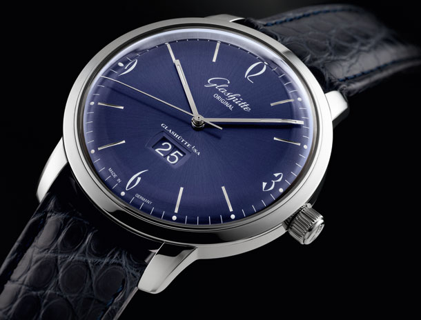 За последний год бренд Glashütte Original дополнил популярную линейку часов Sixties своей винтажной коллекции двумя яркими моделями часов. Вместе со своими темно-синими циферблатами, новые версии часов Sixties и Sixties Panorama Date наполняют выразительными красками серые осенние дни. На выгнутых циферблатах из немецкого серебра изображены арабские цифры 3, 6, 9 и 12, которые охватывает тонко нарисованная белая минутная шкала. Темно-синий ремешок из кожи луизианского аллигатора с элегантными отметками обеспечивает эти две модели из нержавеющей стали аутентичным видом 60-х годов.