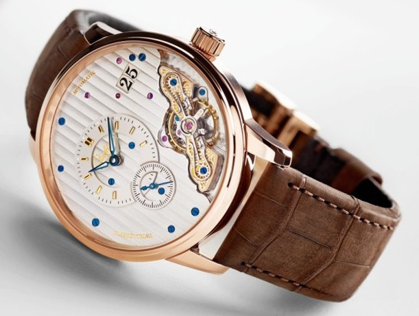 Часы PanoMaticInverse Automatic от Glashutte Original выпущены в корпусе из розового золота 18к диаметром 42 мм. Водонепроницаемый до 50 метров, корпус с обеих сторон защищен антибликовым сапфировым стеклом. На 3-х часах размещена рифленая заводная коронка с выгравированным логотипом бренда Glashutte Original на торце. Великолепно отделанная лицевая сторона калибра выступает в роли циферблата, оснащенного воронеными стрелками с белым люминесцентным покрытием и накладными часовыми метками. Индикация времени осуществляется на децентрализованном циферблате в районе 10-ти часов. Маленькая секундная стрелка вынесена на боковой циферблат на 7-ми часах. Цифровая негабаритная апертура даты расположена на 2-х часах. Часы базируются на мануфактурном немецком автоматическом Калибре Glashutte Original 91-02. Комплектуются элегантным ремешком из кожи аллигатора с застежкой из розового золота 18к.