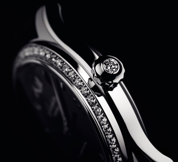 водонепроницаемость 50 м, безель из 52-х белых бриллиантов общим весом 1.09 сt.