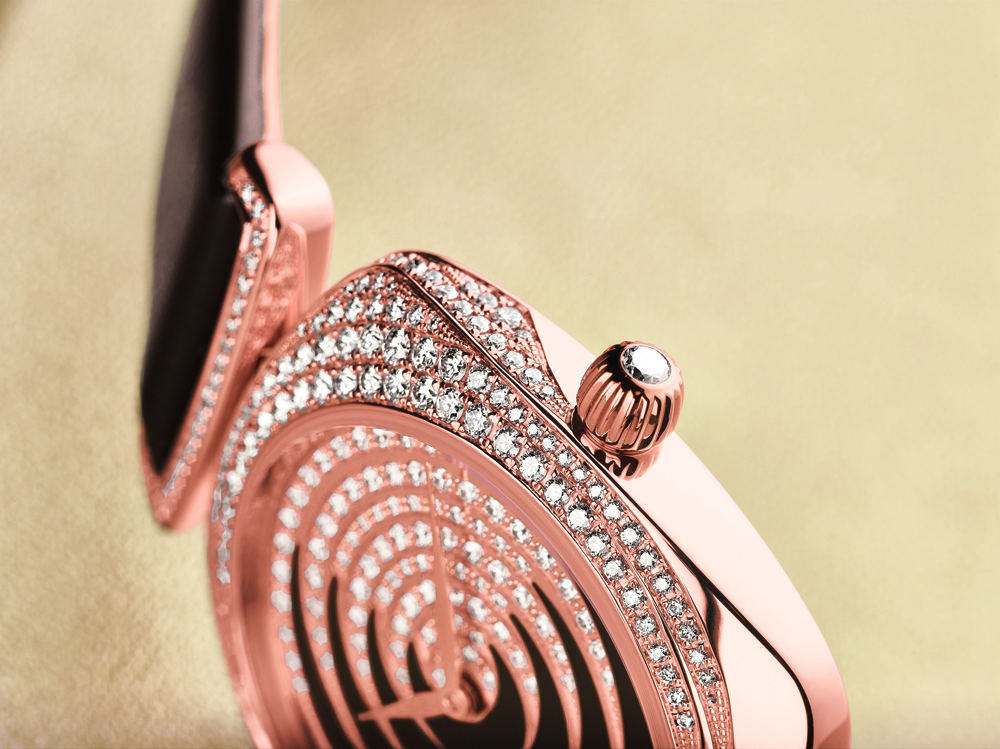 водонепроницаемость 50 м, корпус инкрустирован 135-ю белыми бриллиантами