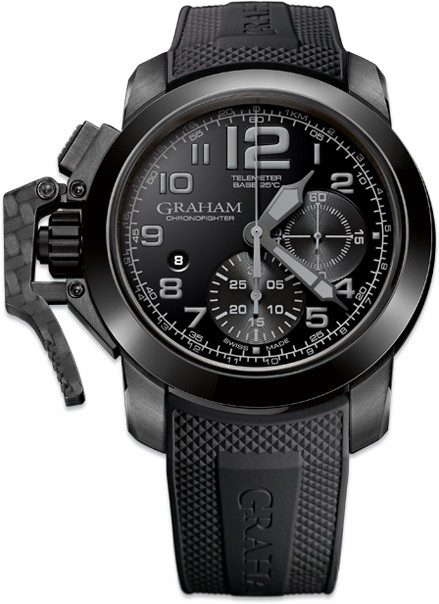 Часы Graham Chronofighter Oversize представлены в корпусе размером 47 мм из нержавеющей стали с покрытием PVD и водонепроницаемостью до 100 метров. Внутри корпуса установлен автоматический механизм, Калибр G1747, обладающий запасом хода 48 часов. На черном циферблате отображаются часы, минуты, секунды, дата. Часы поставляются на каучуковом ремешке с вставкой из нержавеющей стали.