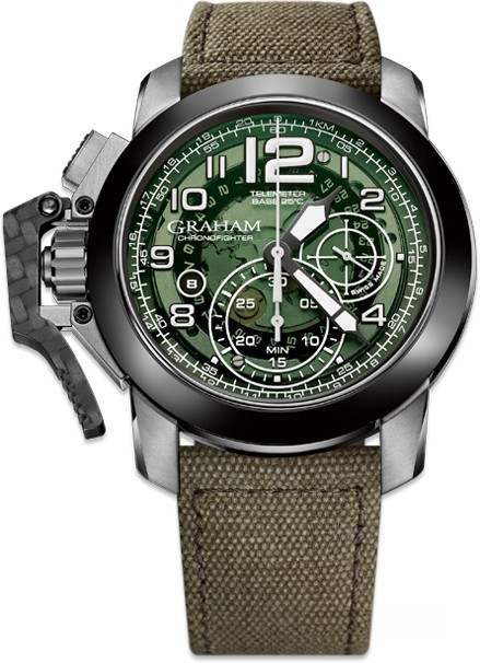 Часы Graham Chronofighter Target представлены в корпусе размером 47 мм из нержавеющей стали с водонепроницаемостью до 100 метров. Внутри корпуса установлен автоматический механизм, Калибр G1747, обладающий запасом хода 48 часов. На зеленом циферблате отображаются часы, минуты, секунды, дата. Часы поставляются на текстильном ремешке с вставкой из нержавеющей стали.