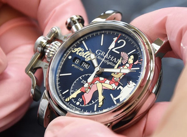 Часы Nose Art Chronofighter выпущены ограниченной серией. Новинка представлена в стальном корпусе диаметром 44 мм с традиционным защитным механизмом коронки и оснащена автоматическим Калибром G1747 с функцией хронографа и 48-часовым запасом хода. Работу механизма можно наблюдать сквозь прозрачное сапфировое стекло. Синий циферблат идеально сочетается с синим кожаным ремешком. Всего будет выпущено 100 экземпляров этих замечательных часов, на циферблате которых будет написано имя девушки – Kelly – на отметке 9-ти часов.