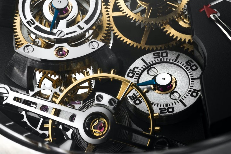 часы, минуты, секунды, запас хода, четырехминутный сферический индикатор постоянного дифференциального вращения