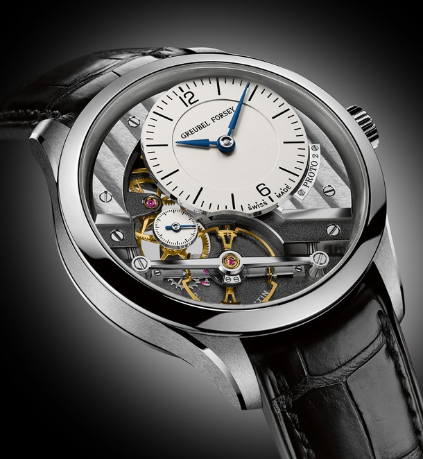 Хотя это действительно самые простые часы Greubel Forsey на сегодняшний день, они не являются традиционными. На создание часов ушло шесть лет, в основном – на новую систему баланса, которая включает крупное колесо диаметром 12.6 мм и пружину, работающую на частоте 18 000 пк/час. Колесо и мост, на котором оно крепится, отполированы и невероятно красивы. Циферблат, схожий с моделью 24 Hours Vision, демонстрирует маркера, выгравированные на нем, а затем эмалированные с обжиганием в печи. В центре внимания бриллиантовая отделка и снятые фаски. За циферблатом можно увидеть палету с прекрасными широкими женевскими волнами. На задней части корпуса присутствует еще более удивительная отделка. Мосты, выполненные из нейзильбера, матированные и зернистые, с отполированными фасками; широкие полированные внутренние углы; храповик, состоящий из концентрических кругов, с колесом с отполированными зубьями со снятыми фасками; а также общая полировка. Стрелки выполнены из стали и золота. Калибр GFS1, результат 6-летней разработки, можно считать одним из наиболее тонко и современно отделанных часовых механизмов с одной лишь часовой индикацией. Размеры часов составляют 41.4 мм в диаметре, 11.7 мм в толщину, и весьма комфортно сидят на запястье.