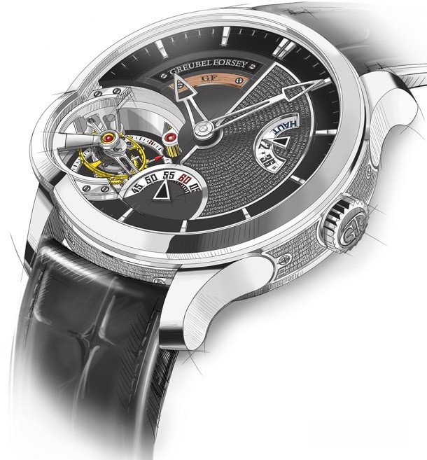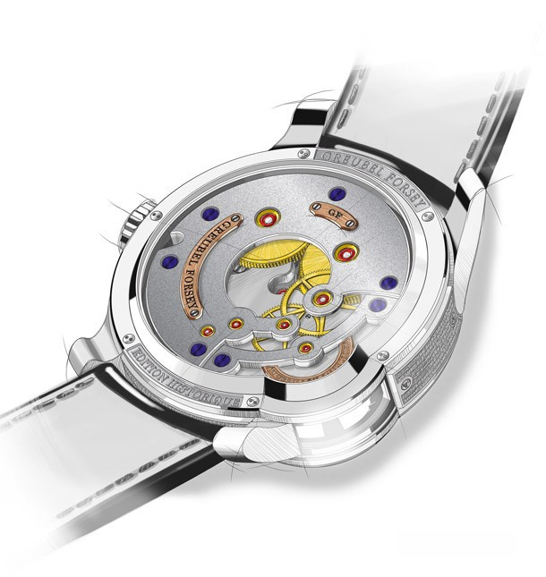 Эксклюзивной серией Tourbillon 24 Secondes Edition Historique компания Greubel Forseyвоздает должное самой ранней из них, Tourbillon 24 Secondes Asymetrique. Корпус изготовлен из платины 950, водонепроницаемость составляет 30 метров. Внутри установлен механизм с ручным заводом. На сером циферблате отображаются часы, минуты, секунды, запас хода, на отметке 7-ми часов находится 24-секундный турбийон. Часы комплектуются ремешком из кожи алллигатора с вставкой из платины. Модель выпущена ограниченной серией 11 штук.