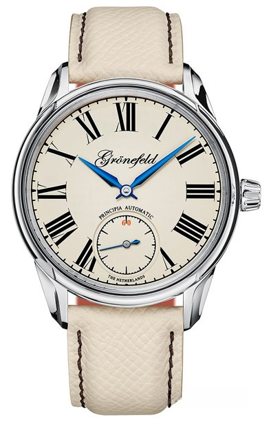 Часы Gronefeld 1941 Principia представлены в корпусе из нержавеющей стали размером 39.5 х 10.5 мм. Внутри корпуса установлен автоматический механизм, Калибр 1941 Principia, обладающий запасом хода 56 часов. На белом циферблате отображаются часы, минуты и секунды. Часы поставляются на кожаном ремешке с вставкой из нержавеющей стали. Водонепроницаемость корпуса составляет 30 метров.