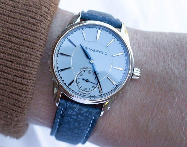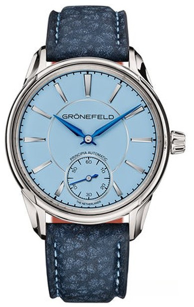 Часы Gronefeld 1941 Principia представлены в корпусе из нержавеющей стали размером 39.5 х 10.5 мм. Внутри корпуса установлен автоматический механизм, Калибр 1941 Principia, обладающий запасом хода 56 часов. На голубом циферблате отображаются часы, минуты и секунды. Часы поставляются на кожаном ремешке с вставкой нержавеющей стали. Водонепроницаемость корпуса составляет 30 метров.