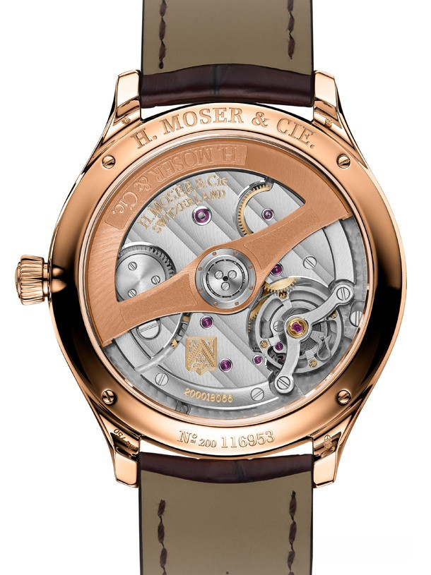 Часы H. Moser & Cie Endeavour Blue Lagoon представлены в корпусе из розового золота 18к размером 40 х 10.7 мм и водонепроницаемостью 30 м. Внутри корпуса установлен автоматический механизм, Калибр HMC 200, обладающий запасом хода 3 дня. На зеленом циферблате отображаются часы, минуты, секунды. Часы комплектуются ремешком из кожи аллигатора с вставкой из розового золота 18к. Серия ограничена - 50 штук.