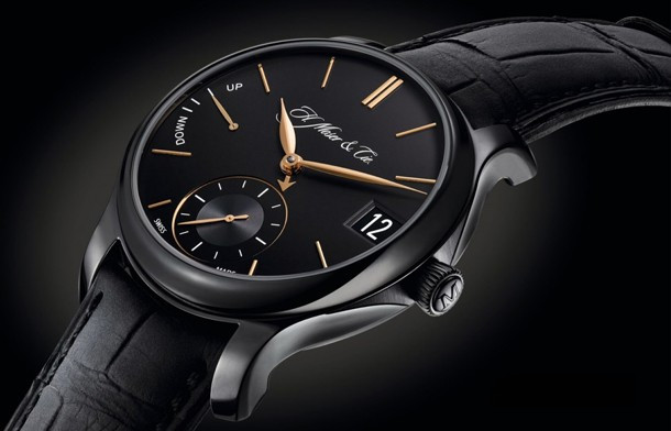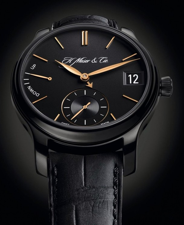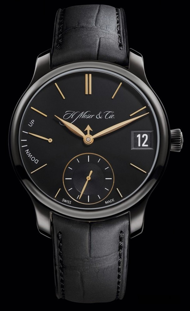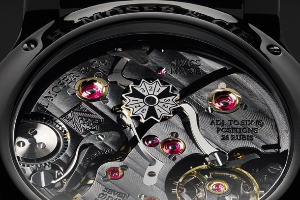 Perpetual Calendar Black Edition (Ref. 341.050-020) от H. Moser & Cie – вечный календарь с круглым корпусом, изготовленным из титана с черным DLC-покрытием, состоящим из трех компонентов, диаметром 40,80 мм, толщиной 11,10 мм. Модель оснащена мануфактурным механизмом с ручным заводом H. Moser & Cie HMC 341, двумя заводными барабанами, семидневным запасом хода, модулем регулятора хода со спиралью Original Straumann Hairspring®, с функциями индикации часов, минут, секунд (посредством соответствующих центральных стрелок), даты (посредством соответствующего цифрового указателя в апертуре, расположенной на 3 часах), месяца (посредством короткой центральной стрелки, на часовой шкале циферблата, где каждый часовой индекс соответствует порядковому номеру месяца), запаса хода (посредством аналогового указателя, расположенного на 9 часах) и високосного года (соответствующий указатель расположен на задней стороне механизма и просматривается сквозь сапфировое стекло на задней крышке корпуса).