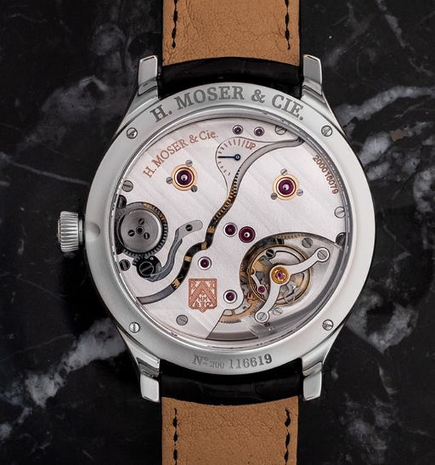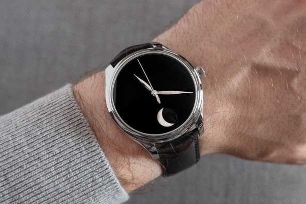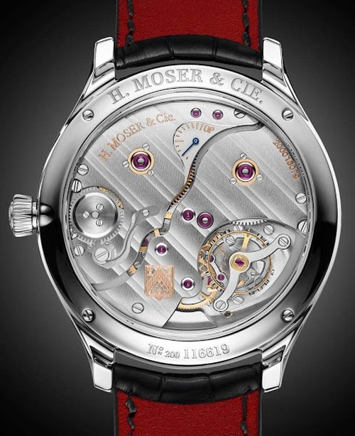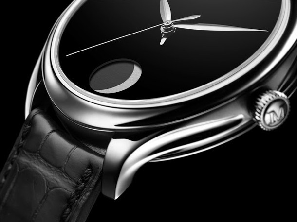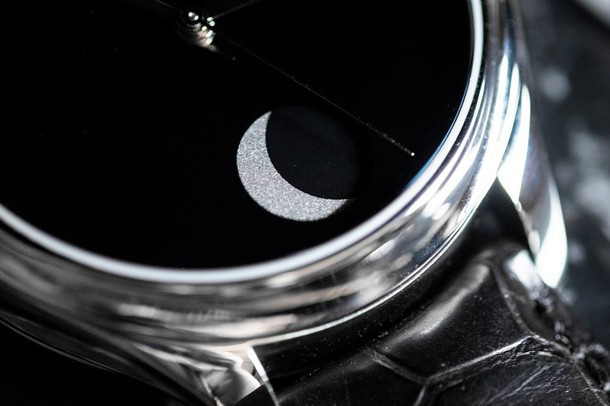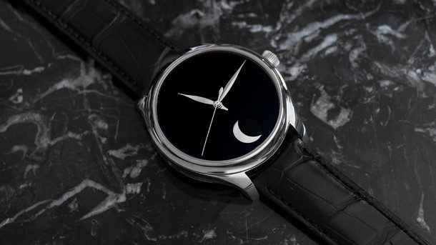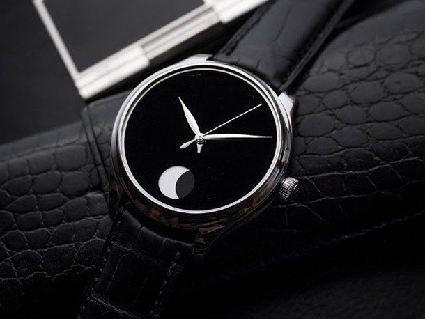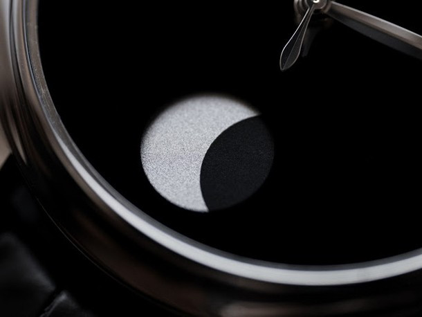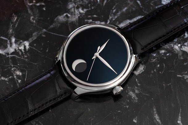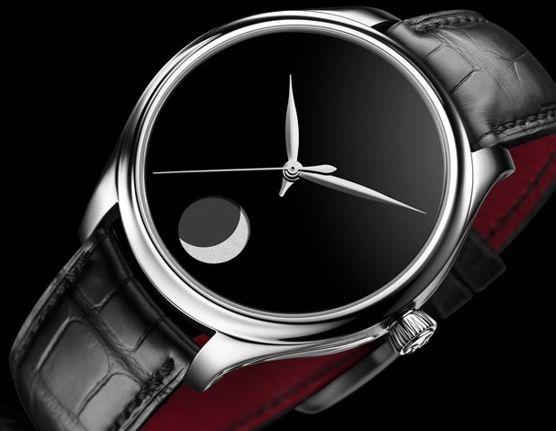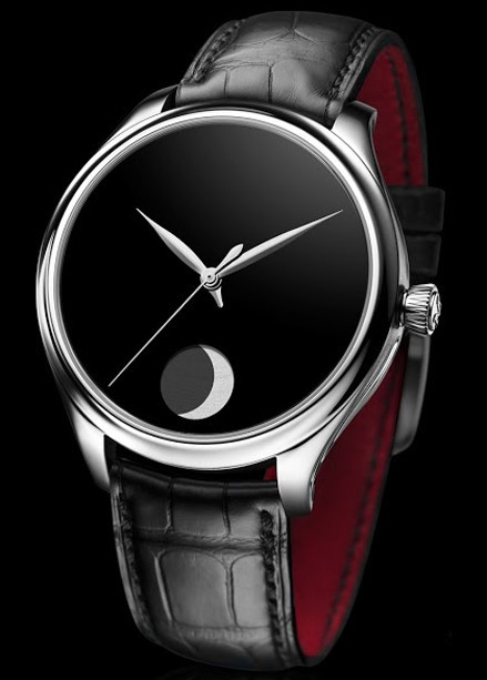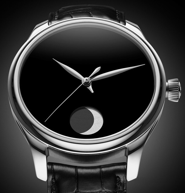Циферблат часов покрыт Vantablack, запатентованным материалом, в котором используются углеродные нанотрубки для поглощения света. Результат – черный цвет, который кажется чернее любого другого искусственного вещества. Здесь он применяется на часах с индикатором фазы Луны, расположенным на отметке 6-ти часов. Насыщенный черный цвет циферблата смотрится потрясающе с полированными стрелками и ненавязчивым крупным индикатором лунной фазы. Часы представлены в корпусе Moser Endeavour, который составляет 42 мм в диаметре и толщиной 12.9 мм. Внутри корпуса установлен механизм с ручным заводом, Калибр HMC 801, который, помимо собственного взаимозаменяемого спуска Moser и высококачественной отделки, включает в себя усложнение лунной фазы, требующей регулировки один раз каждые 1027,3 года.