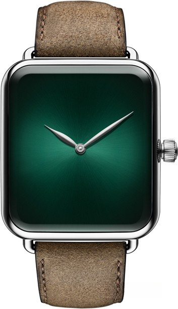 Часы лишь показывают время и ничего больше: у часов Swiss Alp Watch Concept Cosmic Green нет никаких приложений. Модель бросает вызов смарт-часам и претендует на роль символа стопроцентно швейцарских механических часов. Они являются отражением ценностей традиционной часовой механики, но при этом не лишены легкого налета эпатажа, что стало характерной особенностью мануфактуры города Шаффгаузен. В то же время часы Swiss Alp Watch Cosmic Green из коллекции Concept воплощают уникальный стиль H. Moser & Cie., который подтверждает, что роскошь не нуждается в логотипе. Циферблат Swiss Alp Watch Concept без часовых отметок и без фирменных знаков обнажает истинную красоту, выразительность и глубину оттенка моделей Moser & Cie. Cosmic Green.