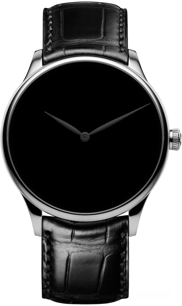 Мужские часы H. Moser & Cie Venturer Hand-Wound 39 mm комплектуются механизмом с ручным заводом, Калибр HMC 327. Корпус размером 39 мм изготовлен из белого золота 18к, водонепроницаемость до 30 метров. На черном циферблате отображаются часы, минуты. На обратной стороне корпуса расположен индикатор запаса хода. Часы комплектуются ремешком из кожи аллигатора с вставкой из белого золота 18к.