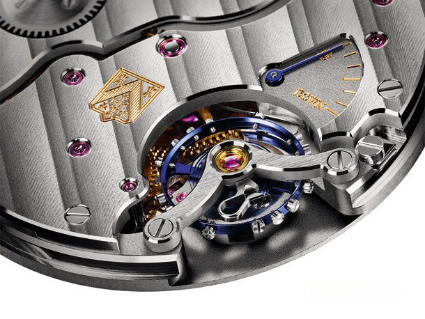 Часы Venturer Tourbillon Dual Time от H. Moser & Cie обладают двумя интересными чертами: двойная спусковая пружина и специальная конструкция (сменный модуль турбийона), облегчающая обслуживание турбийона. Такой механизм, включающий две балансовые пружины, менее подвержен гравитации. Такую конструкцию часовой Дом использовал и в ранее выпущенных моделях, но теперь она пришла в комплекте с турбийоном. А второй часовой пояс оставили без изменений, в виде аккуратной красной стрелки. Механизм автоматический, калибр HMC 802, частота колебаний 21600 пк/ч, запас хода 3 дня. Функции: часы, минуты, турбийон, второй часовой пояс. Корпус из 18К белого золота, диаметр 41,5 мм, высота 14,3 мм. Изогнутое сапфировое стекло, на задней крышке имеется сегмент из сапфирового стекла. Кожаный ремешок.