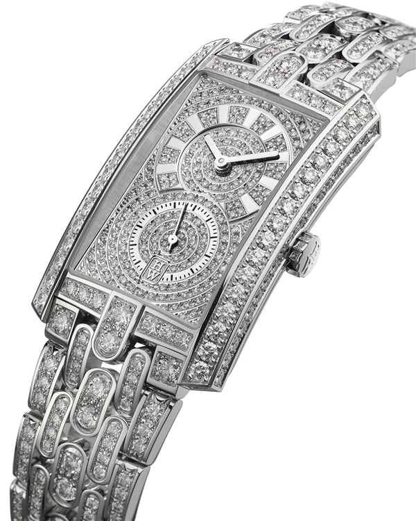 водонепроницаемость 30 м, корпус инкрустирован белыми бриллиантами