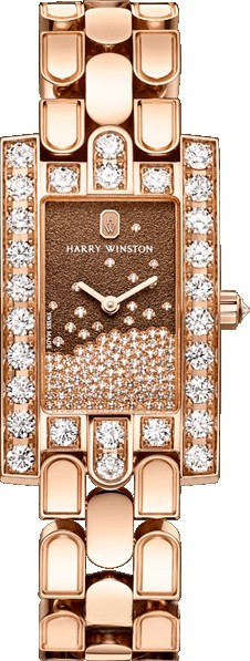 Часы Avenue C, дизайн которых основан на контрастном сочетании цветов, ярко заявляют о своем бескомпромиссном характере. Они выполнены в актуальном стиле и служат прекрасным фоном для украшающих их бриллиантов. Новая модель отличается конструктивной продуманностью и игрой наслоений, образуемых накладными элементами, восьмиугольником с логотипом HW, возвышающимся над циферблатом. Противопоставление углов и изгибов – главный секрет красоты очень современных и невероятно женственных часов Avenue C. Циферблат коричневый с белыми бриллиантами. Часы комплектуются кварцевым механизмом, поставляются на золотом браслете. Корпус инкрустирован белыми бриллиантами.